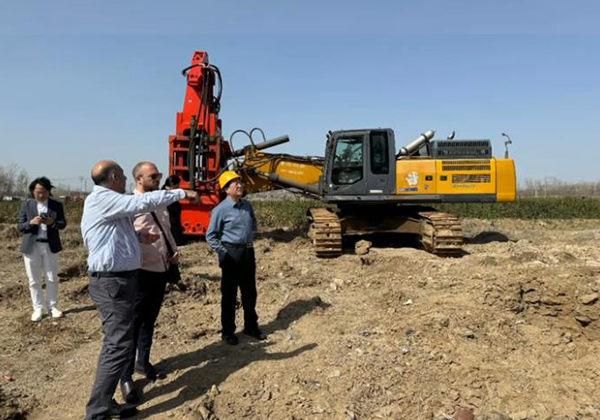 國(guó)外客戶參觀工廠并探討液壓夯HC150 HC180 并在場(chǎng)地觀察實(shí)際夯實(shí)效果